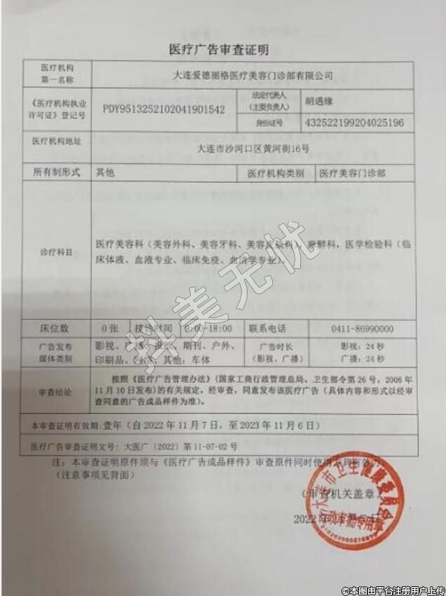 機(jī)構(gòu)名稱:大連愛德麗格醫(yī)療美容門診部有限公司