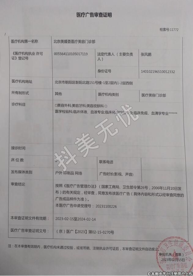 診療科目:醫(yī)療美容科;美容外科;美容牙科;美容皮膚科;美容中醫(yī)科//麻醉科//醫(yī)學(xué)檢驗科|臨床體液、血液專業(yè) //醫(yī)學(xué)影像科|超聲診斷專業(yè)******