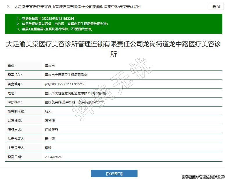 大足渝美棠醫(yī)療美容診所管理連鎖有限責(zé)任公司龍崗街道龍中路醫(yī)療美容診所