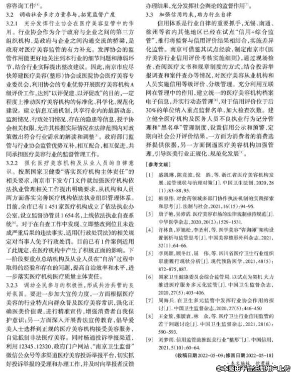 結(jié)論:南京市醫(yī)療美容行業(yè)的迅速發(fā)展對監(jiān)管體系的完善提出了挑戰(zhàn),僅靠衛(wèi)生行政部門監(jiān)管力度不夠,構(gòu)建有行業(yè)協(xié)會、群眾、媒體等參與的綜合監(jiān)管體系十分必要。
