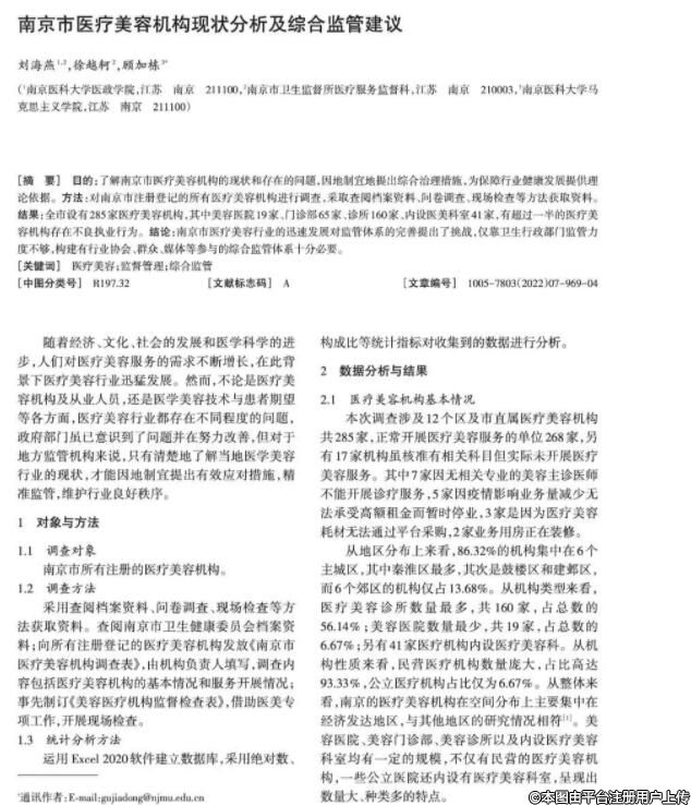 南京醫(yī)療美容機(jī)構(gòu)現(xiàn)狀分析及綜合監(jiān)管建議