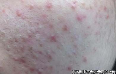 在膿包痘的基礎(chǔ)上,痘痘覆蓋了一層厚厚的角質(zhì)。