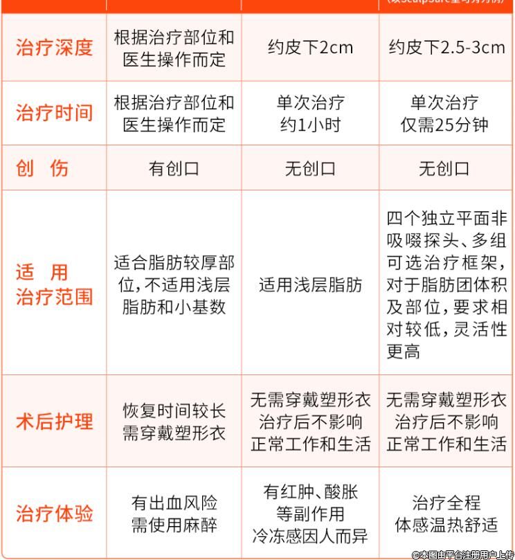 但目前制霸第一梯隊的還是吸脂手術、冷凍溶脂、激光熱溶脂三大技術。
