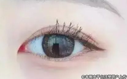 松弛的皮膚完全遮住重瞼線,會遮蓋部分瞳孔,眼尾出現(xiàn)下垂,有“三角眼”情況。