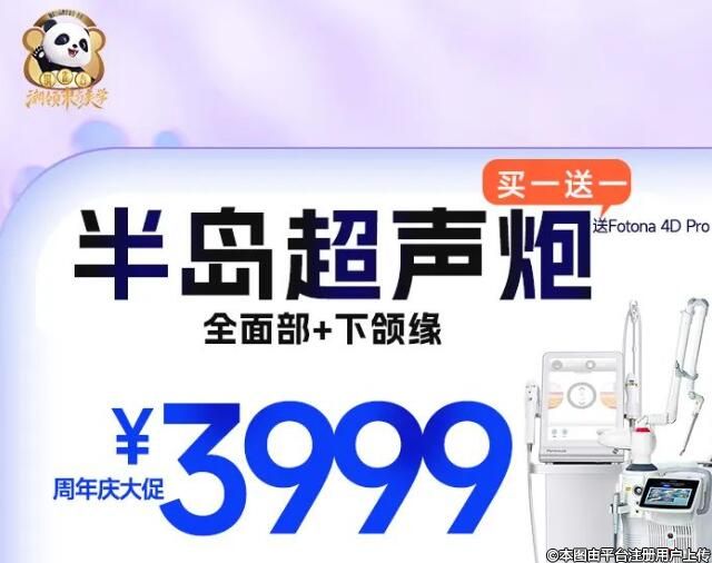 除了超聲炮,銅雀臺超聲系列抗衰價格也是很香的哦。Taixl黃金炮1999元,第三代超聲刀/黃金超聲炮買一送一。