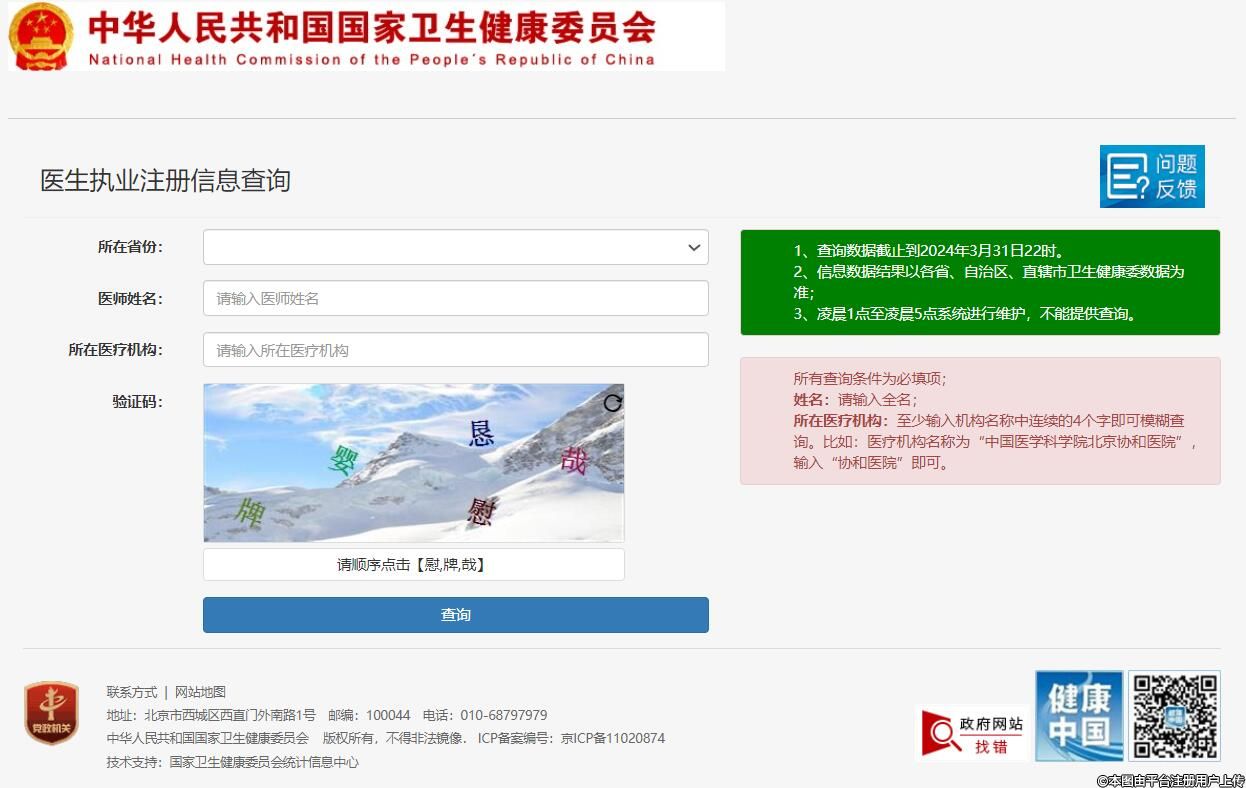 【快捷方法】點擊網(wǎng)址進(jìn)入國家衛(wèi)健委官網(wǎng)(醫(yī)生執(zhí)業(yè)注冊信息查詢):http://zgcx.nhc.gov.cn:9090/Doctor