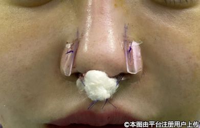【3】鼻翼緣術(shù)后,會在鼻孔鼻翼處固定透明塑形板,作用是加強皮瓣的固定,防止創(chuàng)面內(nèi)積液,透明塑形板便于觀察皮瓣顏色。