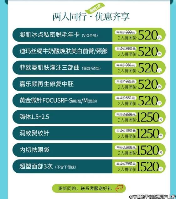 軍大整形給你攢力,閨蜜拼團(tuán)火爆來襲!價(jià)格特惠,多個(gè)項(xiàng)目低至一折起,閨蜜成團(tuán),在變美的道路上也有人陪喔!