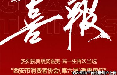 近日,朗姿醫(yī)美·高一生再次當(dāng)選“西安市消費者協(xié)會(第六屆)理事單位”!系西安市醫(yī)療美容行業(yè)唯一獲授單位!這一殊榮,是實力的象征,更是責(zé)任的擔(dān)當(dāng)!