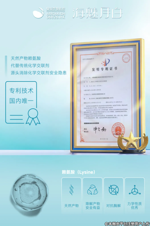 昊海生科自主研發(fā),全球首創(chuàng)有機(jī)交聯(lián)工藝,海魅月白玻尿酸創(chuàng)新使用天然產(chǎn)物賴(lài)氨酸(人體必需氨基酸)為交聯(lián)劑,相較于傳統(tǒng)化學(xué)交聯(lián)劑安全性高。該玻尿酸為國(guó)內(nèi)首個(gè)封閉透明質(zhì)酸酶作用位點(diǎn)產(chǎn)品,具有更為長(zhǎng)效的特質(zhì)。