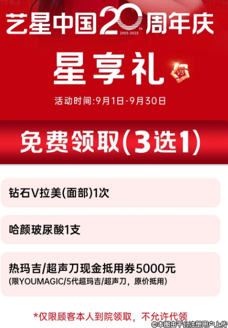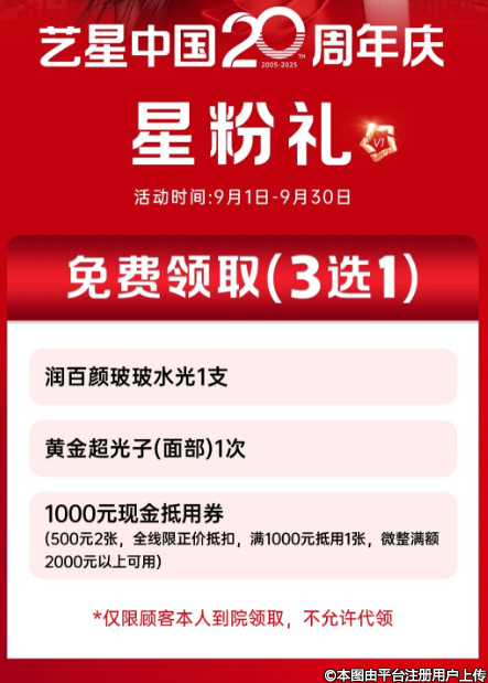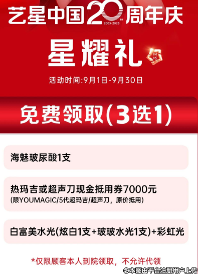 超級(jí)星院活動(dòng)期間,即9月1日--30日,溫州藝星卡級(jí)客戶來(lái)院即可免費(fèi)獲取超級(jí)星粉上門(mén)禮。