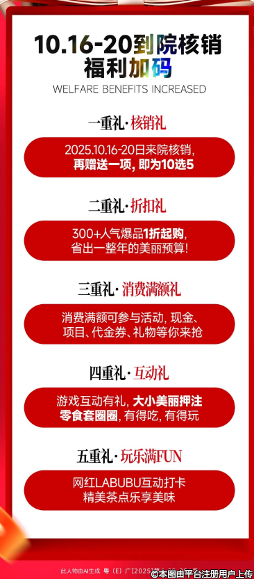 10月16-20日來院核銷門票,項目再加送1項,從10選4升級為10選5?。ㄕ酆舷聛恚骄坏?0塊錢薅1個爆款項目,做夢都會笑醒~)