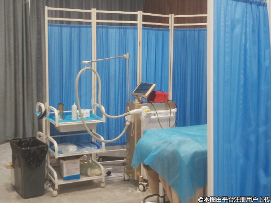 店里材料設(shè)備展示區(qū),有各種材料和一起展示,另外在前臺(tái)的地方還有醫(yī)療機(jī)構(gòu)執(zhí)業(yè)許可證的證件跟營(yíng)業(yè)執(zhí)照掛在墻上。