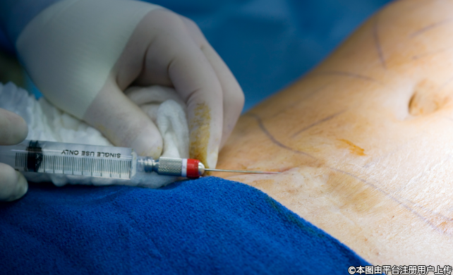 手術(shù)前,醫(yī)生會在目標(biāo)部位注射含有麻醉劑、腎上腺素和生理鹽水的腫脹液。腫脹液可使脂肪細(xì)胞膨脹、分離,同時減少出血,為后續(xù)吸脂創(chuàng)造條件。