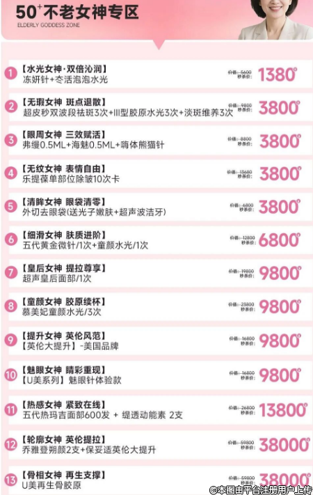 四大分齡專(zhuān)區(qū),直擊塑美訴求,從 20+精致女神到50+不老女神。
